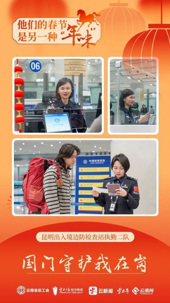昆明出入境边防检查站执勤二队是驻守昆明长水国际机场的国门卫士,曾获全国巾帼文明岗、云南省三八红旗集体等多项荣誉。春节期间,全队民警以“在岗一分钟、尽责六十秒”的信念坚守一线,日均查验出入境航班超百架次,守护国门平安。