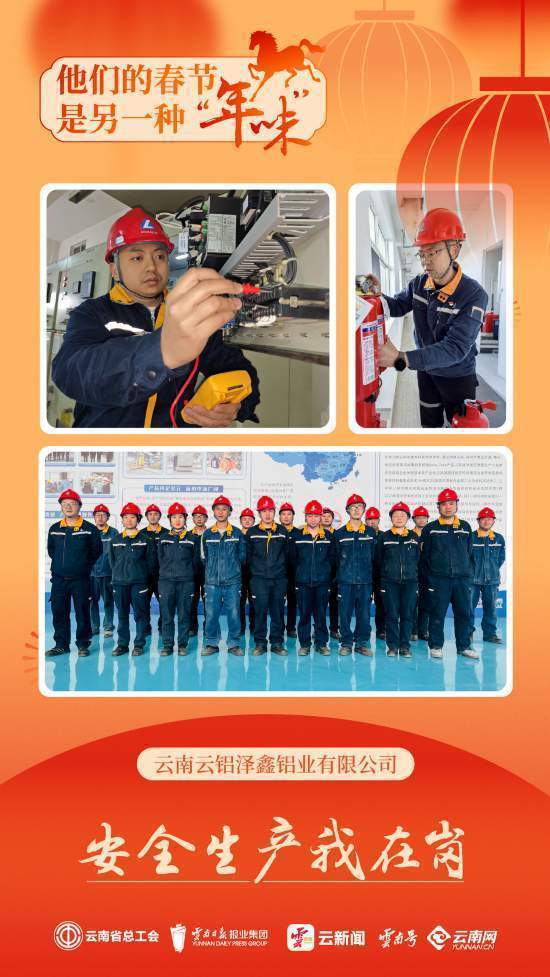 在云南云铝泽鑫铝业有限公司,电解生产的炉火昼夜不息,机器的轰鸣声与春节的喜庆交织成独特的年味。